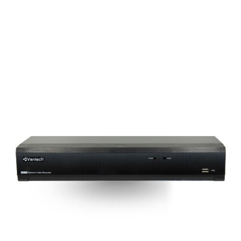 Thiết bị hỗ trợ giám sát linh hoạt với nhiều cổng kết nối như VGA, HDMI, USB, E-SATA, RJ45, cùng khả năng xuất hình ảnh 4K. Phần mềm quản lý VANTECHPRO giúp xem trực tiếp và phát lại tối đa 16 kênh, kết hợp các tính năng phát hiện sự kiện (mất tín hiệu, báo động, email, thông báo di động) để tăng cường tính an toàn và chủ động trong giám sát.